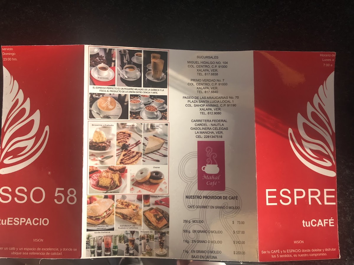 Introducing Espresso 58, a charming café nestled in Actopan, Veracruz, Mexico, where coffee lovers can indulge in exquisite brews and delightful treats. This coffee shop stands out for its exceptional coffee, praised by patrons like George Díaz, who describes it as one of the best he has tasted. The atmosphere is fresh and inviting, bolstered by good music and a beautiful location, which creates a perfect backdrop for relaxation.